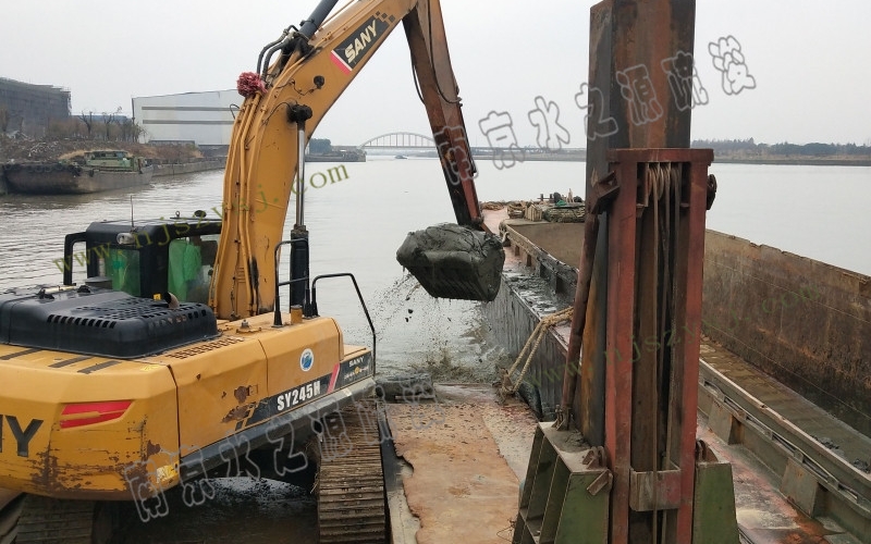 挖泥船挖泥之后,将挖出的泥装到泥驳上,泥驳满载后自航至抛泥点进行抛泥。